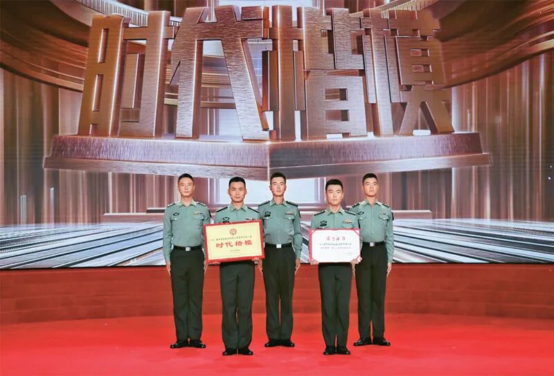图为陆军某合成旅合成二营装甲步兵一连(“刘老庄连”)官兵代表在“时代楷模”发布仪式现场合影驰盈优配。 新华社记者 张永进/摄